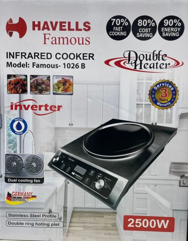 Germany Technology Havells famous Infrared Dip Cooker, Model: Famous-1026B, 3in 1 Double Heater & Dual cooling Fan, 2500 Watts.