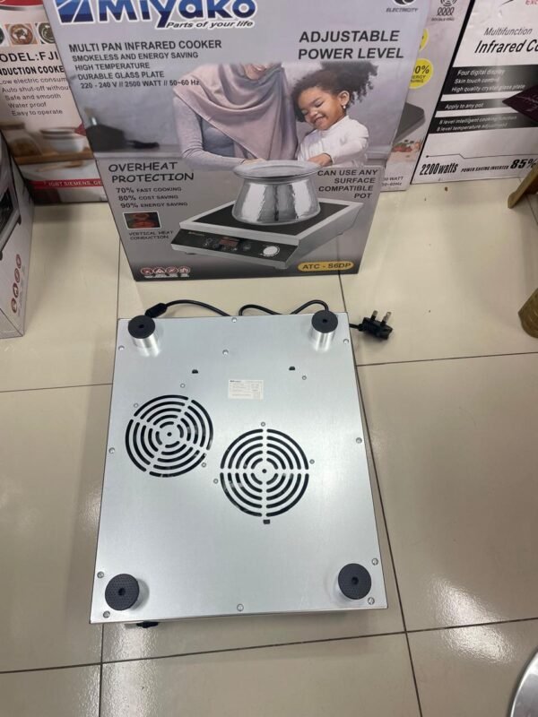Miyako ATC-S6DP Multi Pan Infrared Cooker in Bangladesh. Smokeless, energy-saving, high-temperature durable glass plate, 2500W. Compatible with any pot.