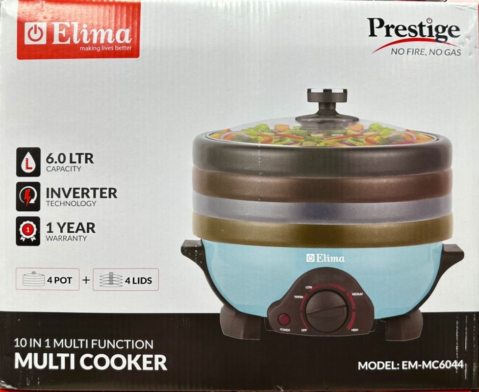 Prestige Elima Electric Multi Curry Cooker & Rice Cooker With 4 Pots 4 Lids- 6 Ltr / 1800 Watts, Model-EM-MC6044 / Best Price in BD.