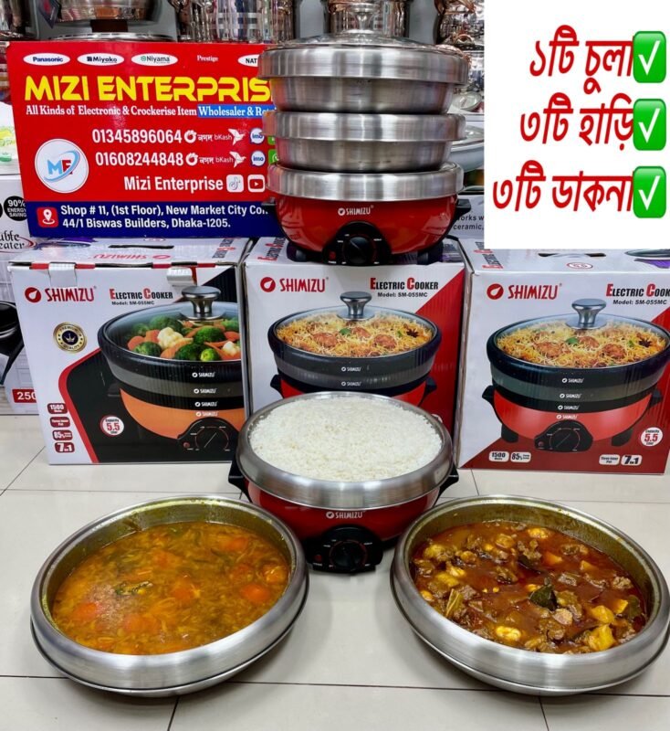 Shimuzi Electric Multi Curry Cooker & Rice cooker With 3 ss Pots 4 Lids- 5.5 Ltr / 1500 Watts