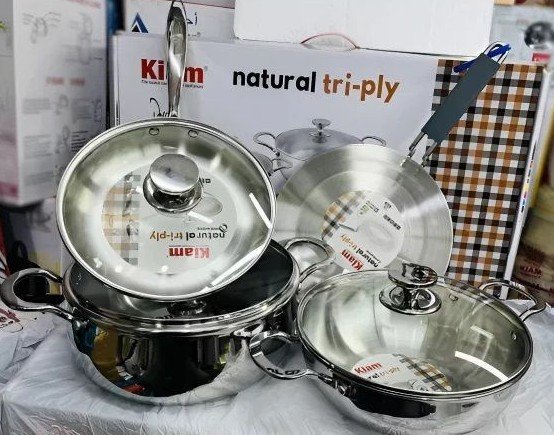 KIAM NATURAL TRI-PLY STAINLESS STEEL COOKWARE 7-PIECE SET- KARAI 26 CM, CASSEROL 26 CM, RUTI TAWA 26 CM, FRY PAN 24 CM